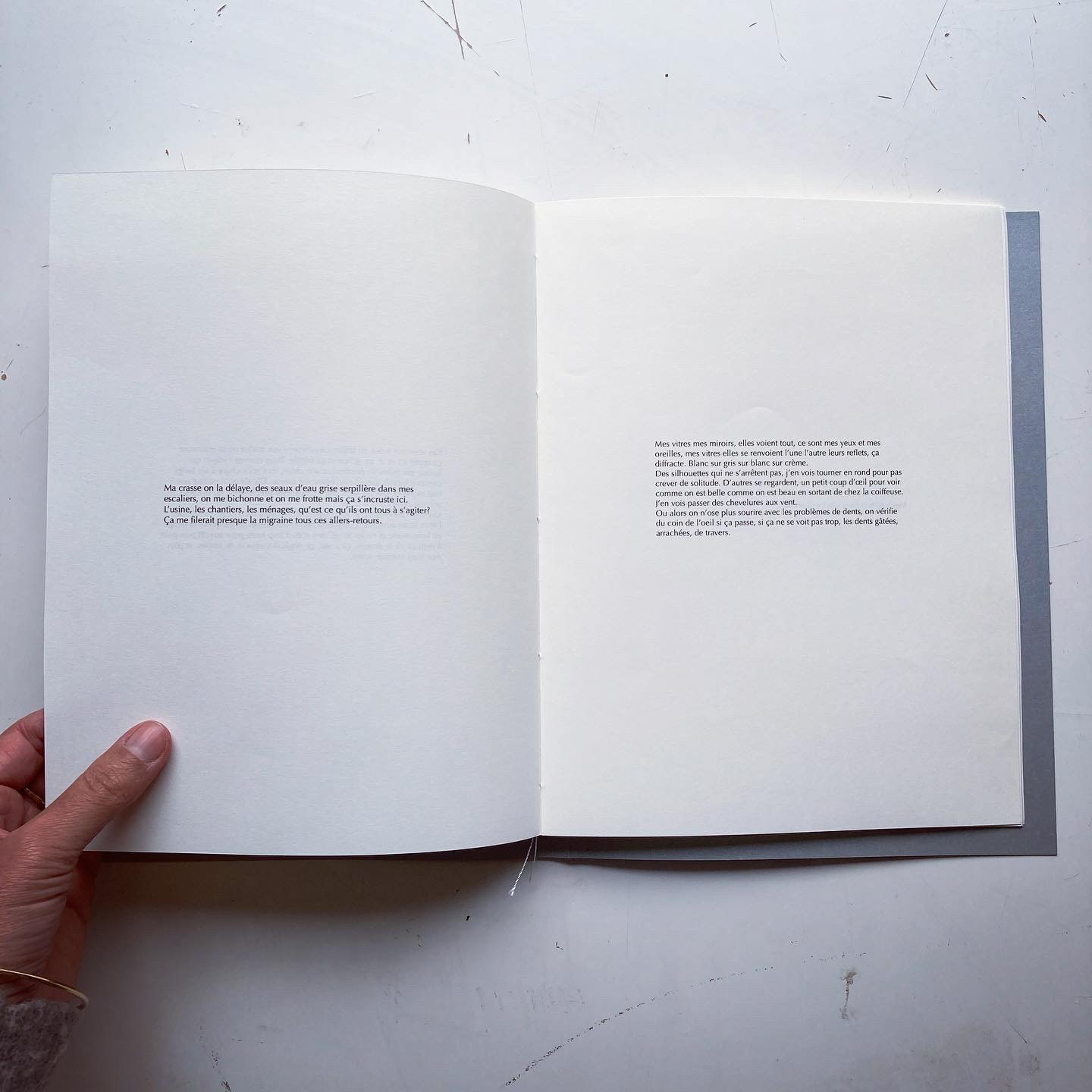 Textes et images de la série "Blanc sur gris sur blanc sur crème", faite en 2022 à Saint Nazaire pour le festival Cargo.