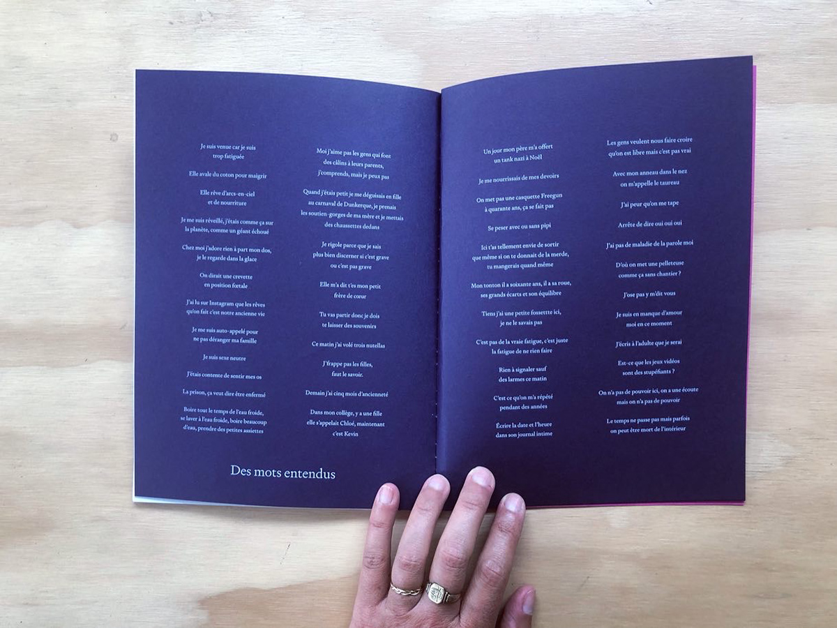 Jouant le jeu du fac similé, ce cinquième numéro de Capture suit les étapes de création du projet Luminescences de la photographe Lucie Pastureau, au travers des notes qu'elle a prises lors de deux résidences Culture santé, entre 2017 et 2019, avec les patients et soignants de l'Unité de santé de l'adolescence de l'Hôpital Saint Vincent-de Paul à Lille.